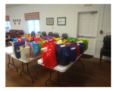 We distribute bags with supplies that are not able to be purchased with food stamps: shampoo, toothpaste, detergent, soap, and personal care items. We also give out blankets and pillows as they become available.